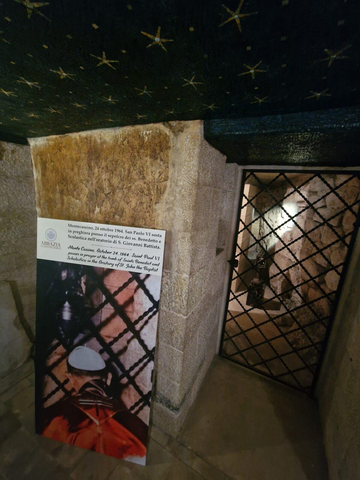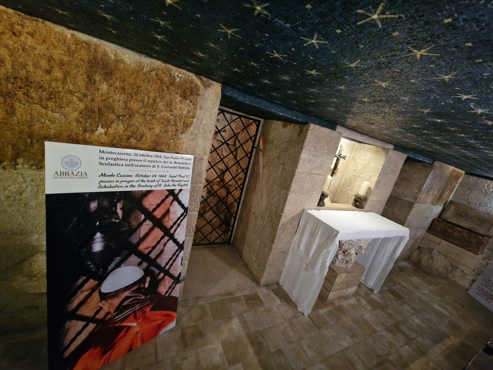 Considerato il luogo più intimo della vita monastica, l’oratorio fu scelto da Papa Paolo VI il 24 Ottobre 1964 per sostare in preghiera presso il sepolcro di San Benedetto e Santa Scolastica.