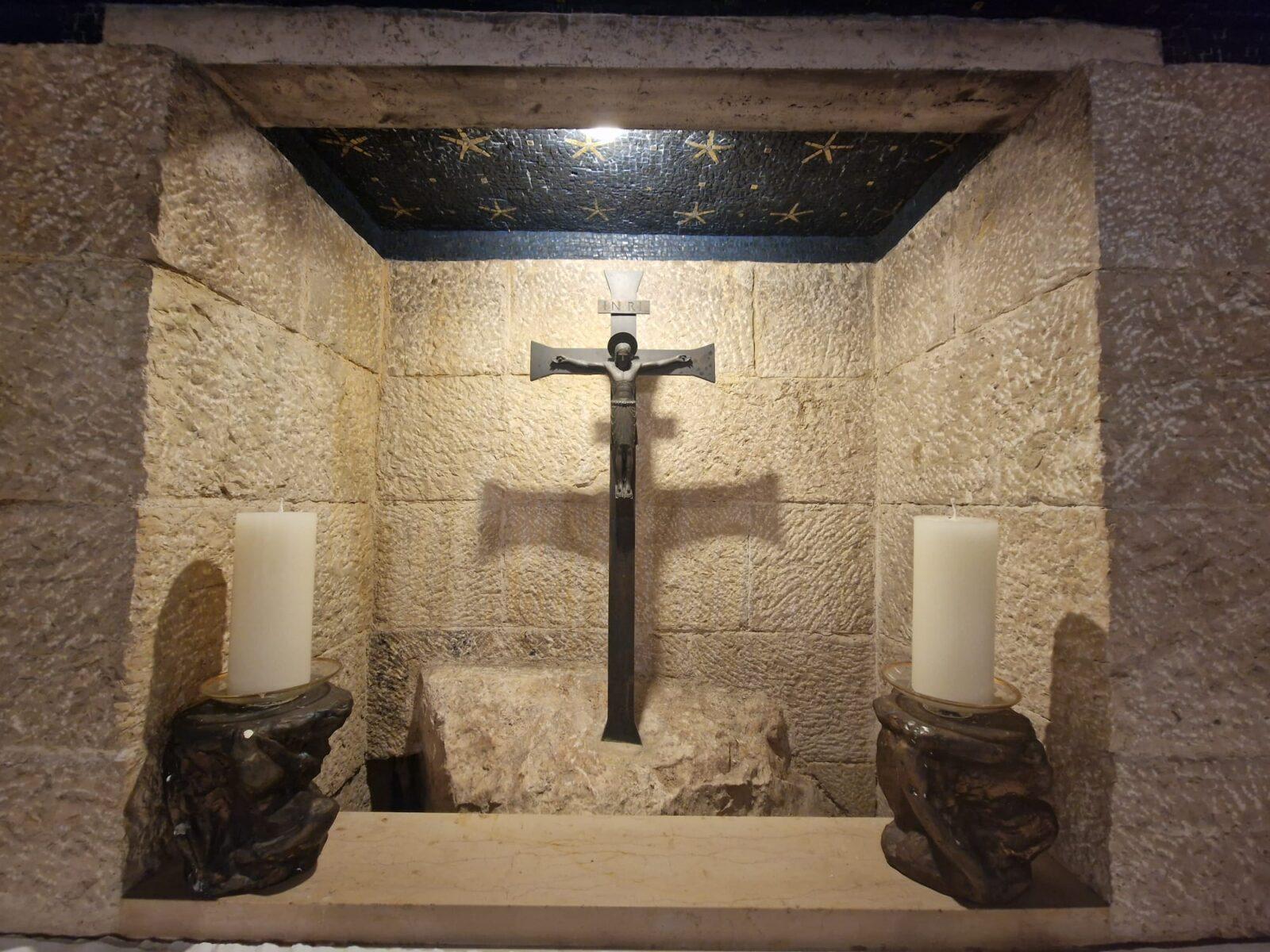 La croce all’interno della Cappella è stata posizionata sulla parte più alta della cima della montagna su cui si innalza l’Abbazia.