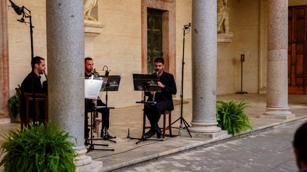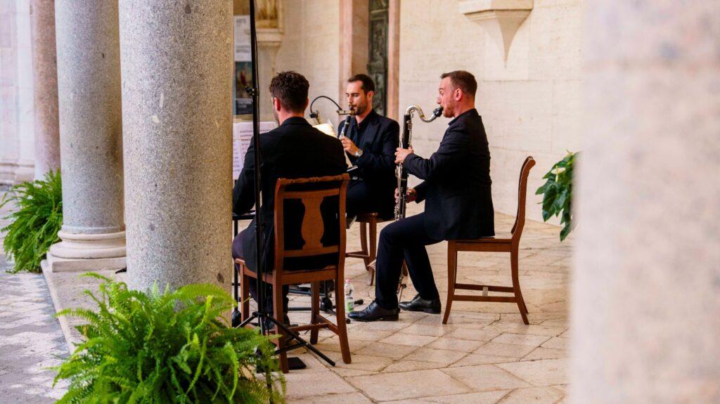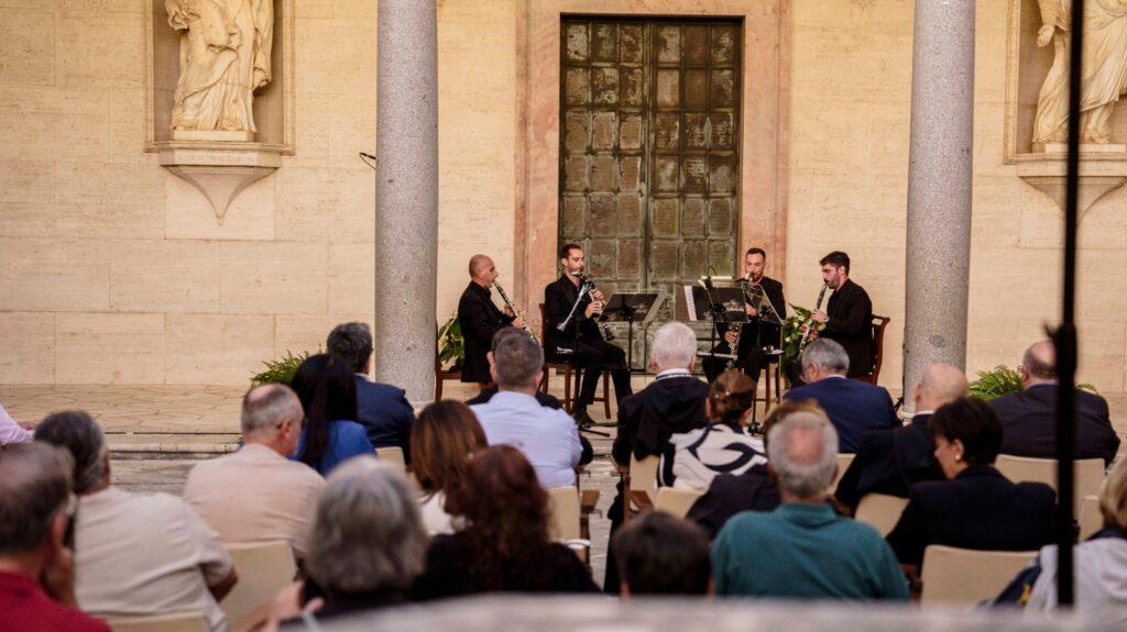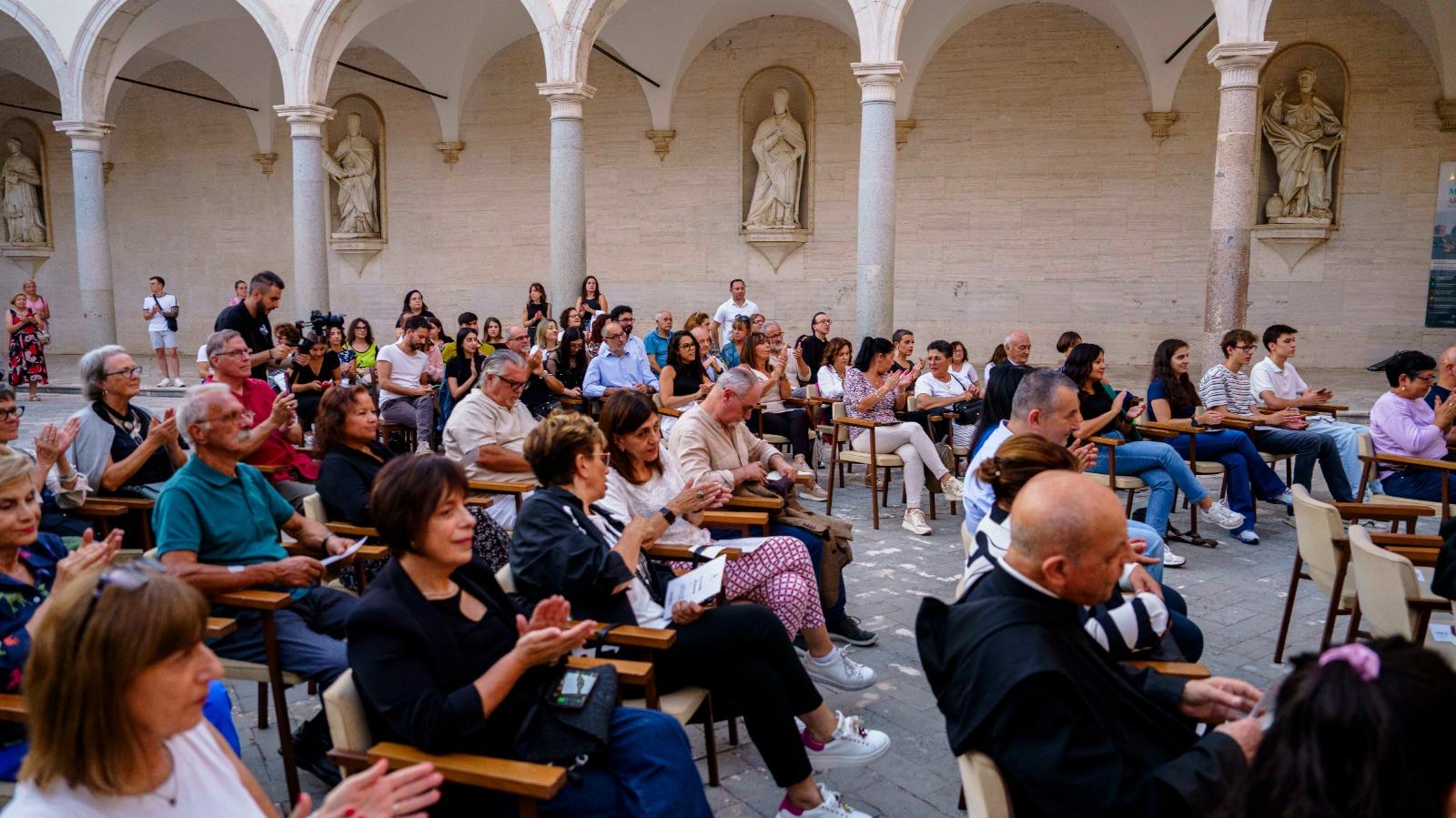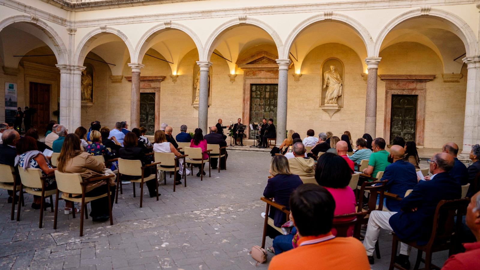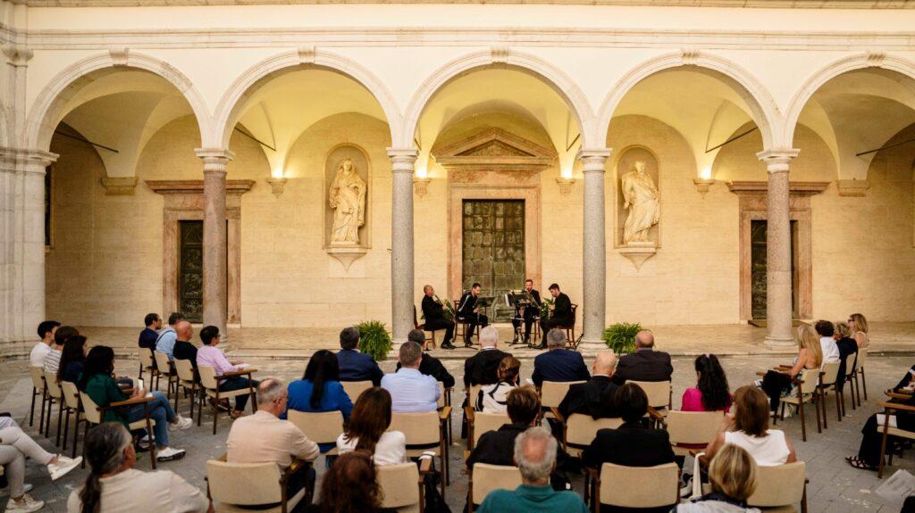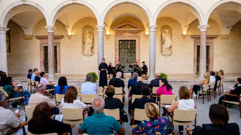 Il Chiostro dei Benefattori, da sempre luogo di raccoglimento e contemplazione, si è trasformato per l’occasione in uno spazio di incontro tra arte, spiritualità e cultura, confermando la missione dell’Abbazia di Montecassino quale custode di bellezza e promotrice di dialogo attraverso la musica.