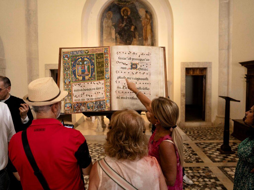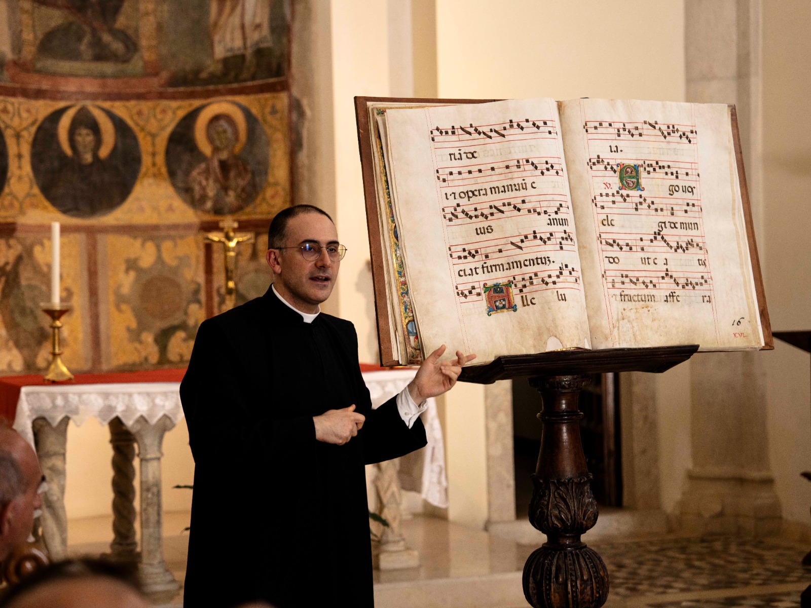L’appuntamento è stato impreziosito da “Ri-sonanze dal Museo”: proposta curata da dom Alessandro Trespioli, direttore del coro di Montecassino, volta a riscoprire i canti della tradizione liturgica insieme ai loro testi miniati conservati in Abbazia. Si è trattato di una vera e propria esperienza multi-sensoriale, dove alla bellezza dei colori e delle figure ornamentali dei testi si è aggiunta anche la suggestiva esperienza dell’ascolto del gregoriano.